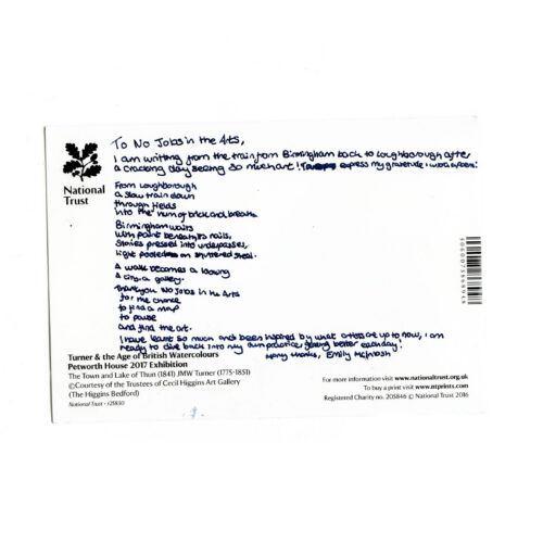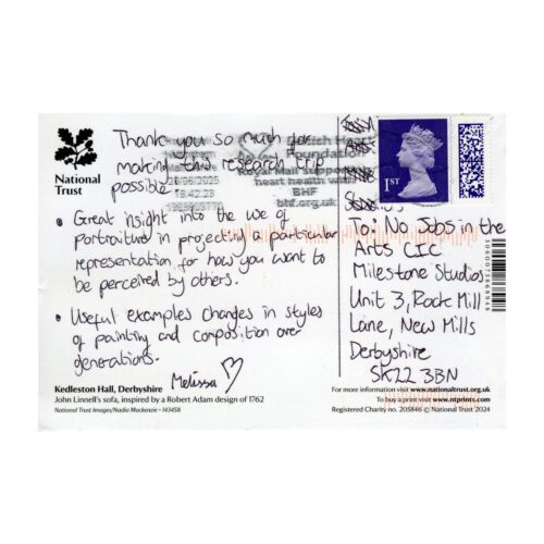 PAP supports early-career creatives engaging with the Midlands arts scene. To capture these journeys, we ask bursary recipients to send a purchased or handmade postcard from their pilgrimage to us, to join our unique collection. These keepsakes document the places, reflections, and creative practices of those exploring cultural and creative venues in our region.