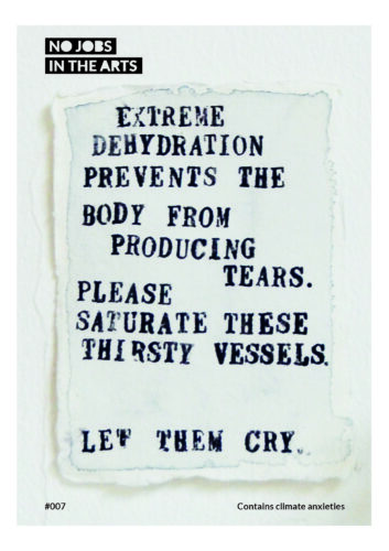 “The program of events and zines No Jobs in the Arts runs is always of interests as the program is so varied and feels very generous as a way of sharing art, and information, and providing opportunities.”